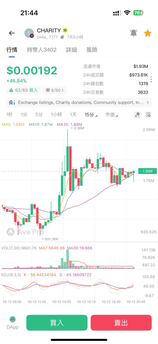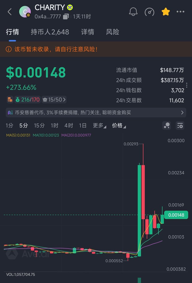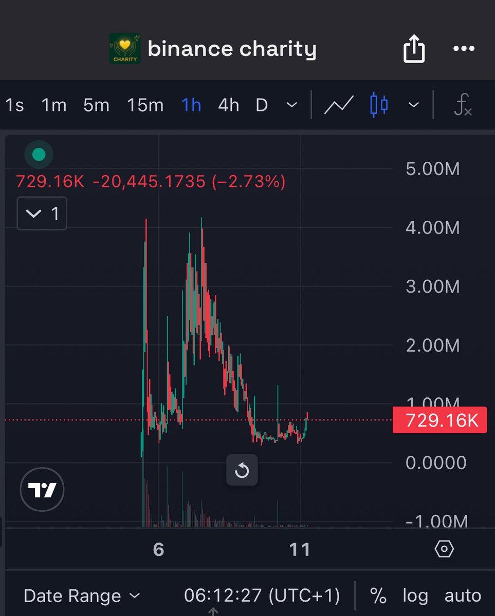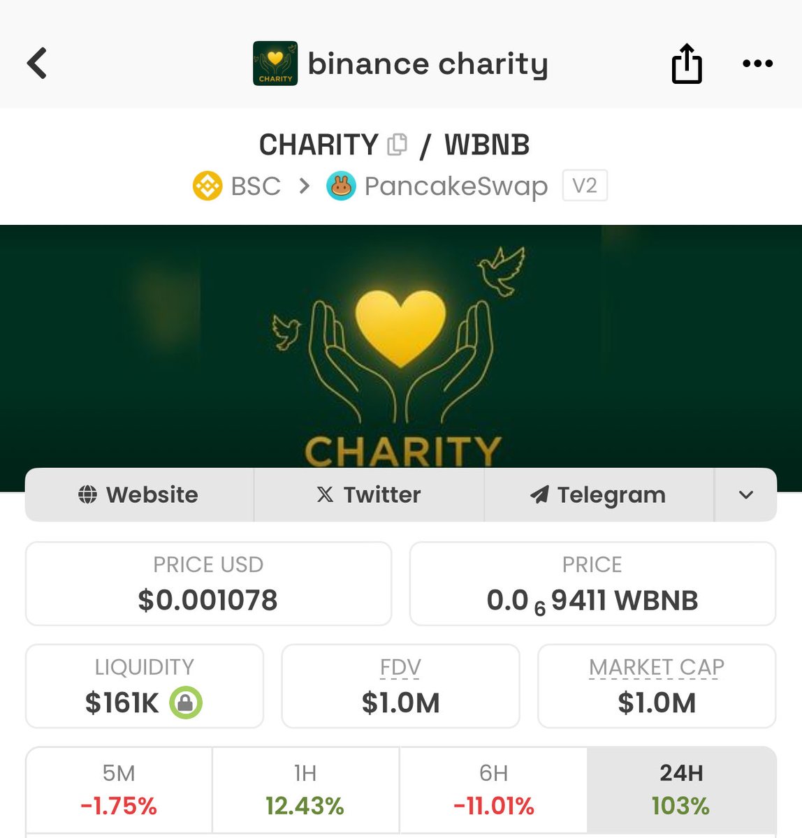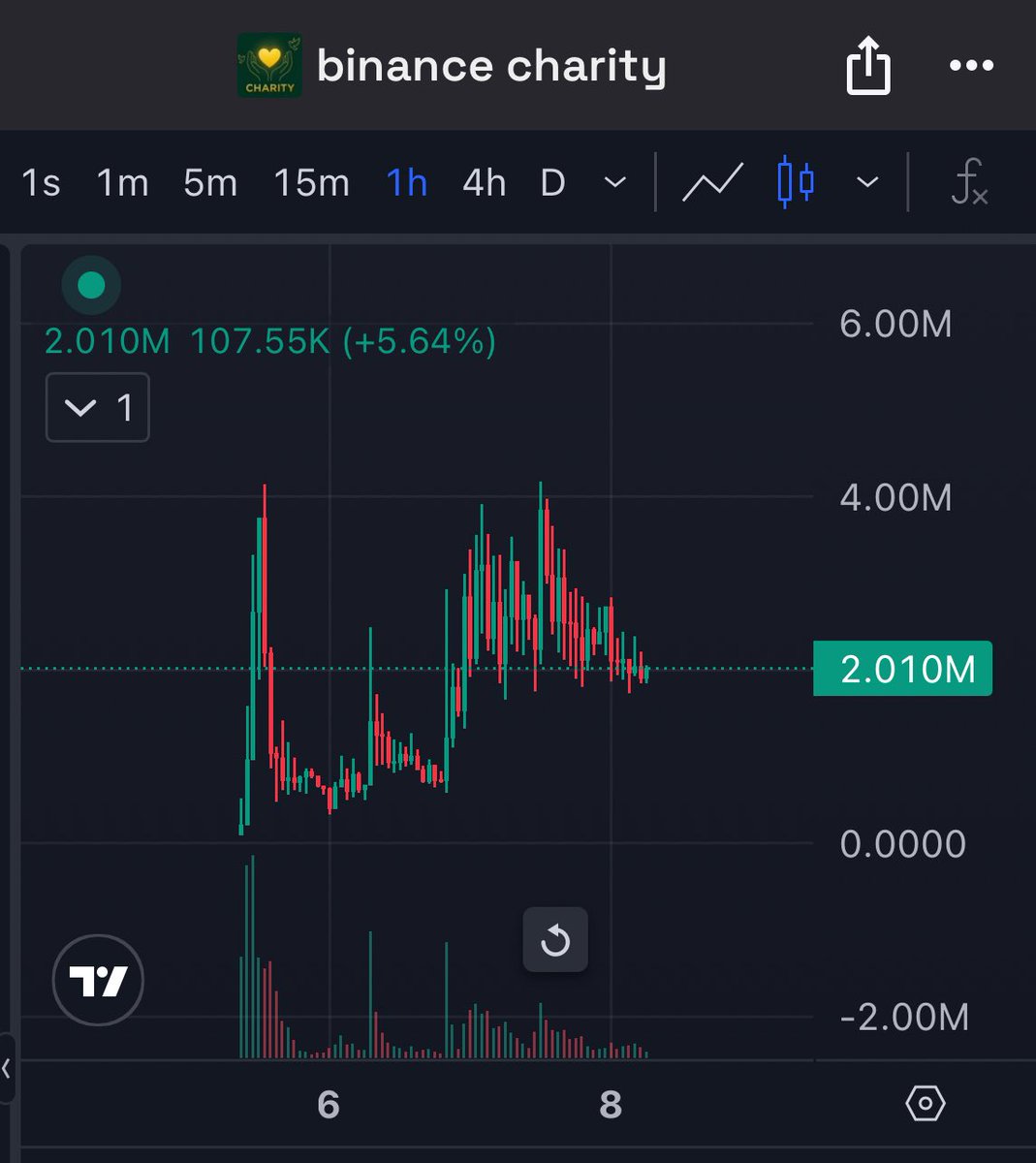 这 $Charity 看起来也在2M稳住了,做市商还会继续洗吗?估计接下来就等一阵风,有好的庄家实在很舒服,目前只持有 @heyijieyouBNB 和 $Charity ,希望这两个项目可以带我重回A8,拜托了❤️❤️❤️