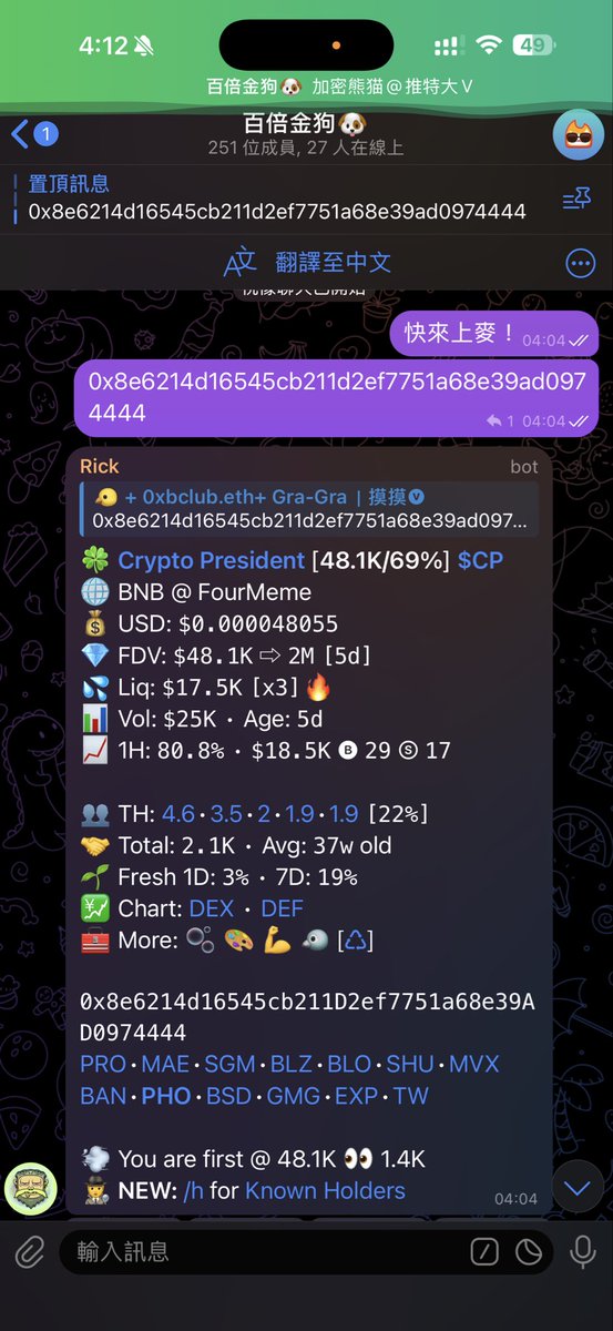 $CP 加密總統來了 ! 0x8e6214d16545cb211d2ef7751a68e39ad0974444 頻道: