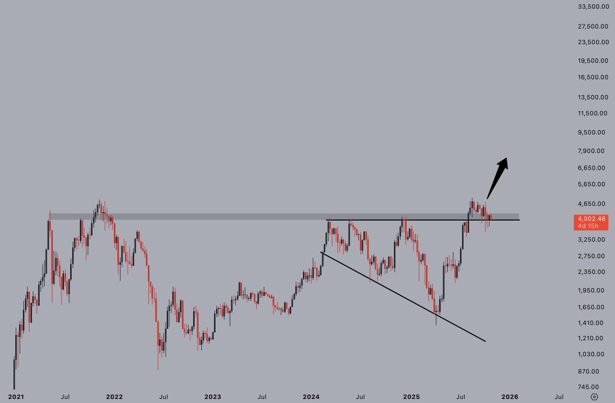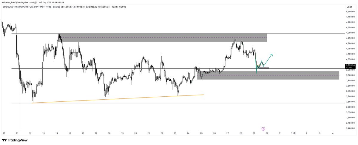 $ETH 破位,马上到达 3980-3950 区域了,可以开始做止盈准备了。