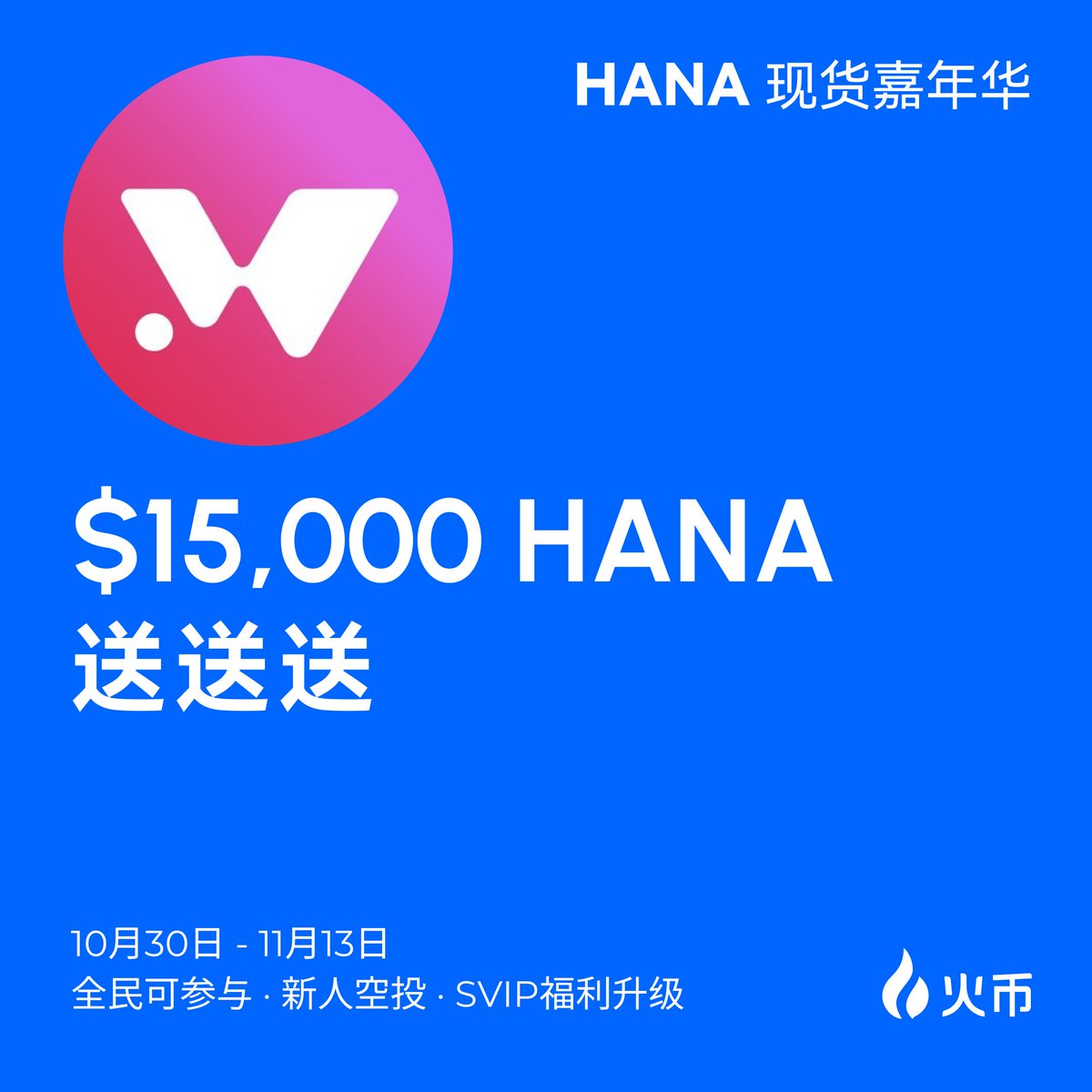 一共 $15,000 $HANA 总奖励,现货交易 $HANA 就能领!