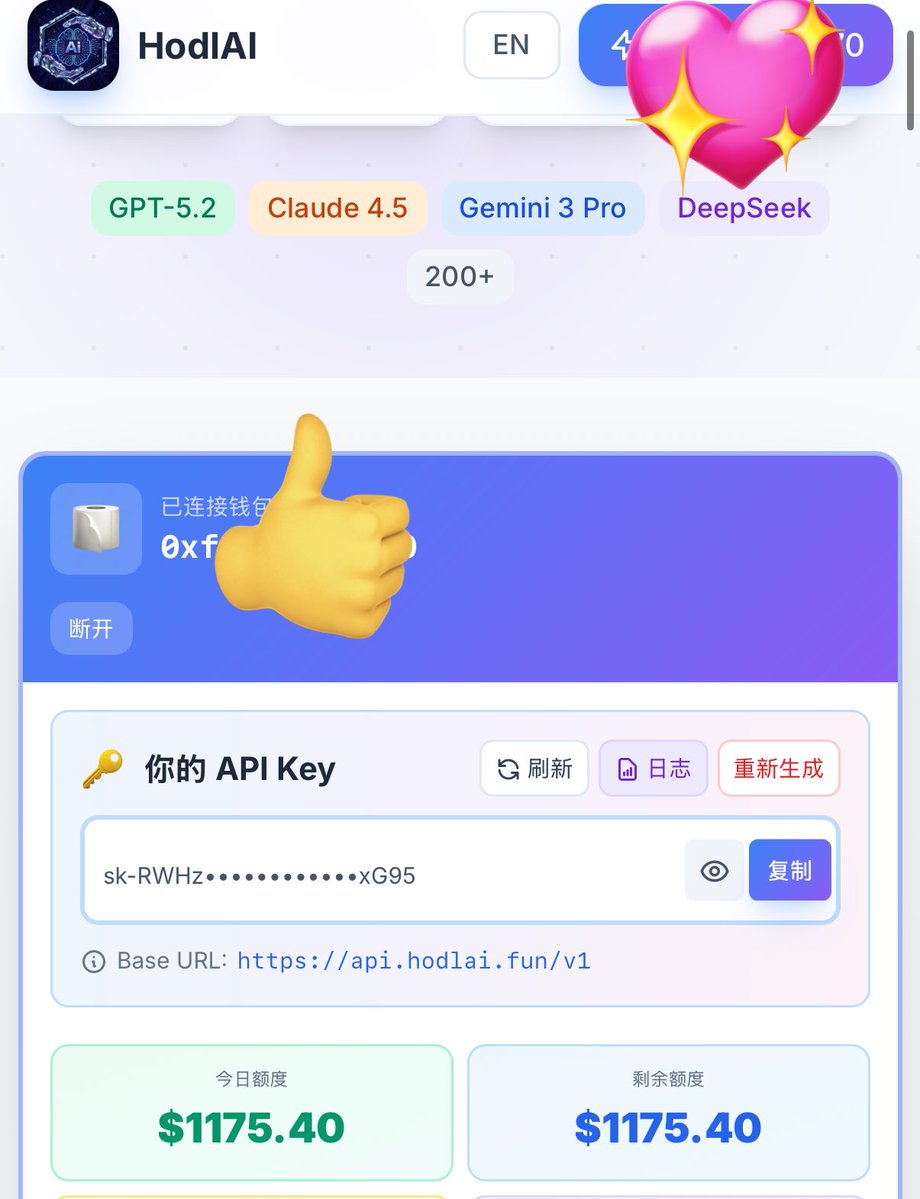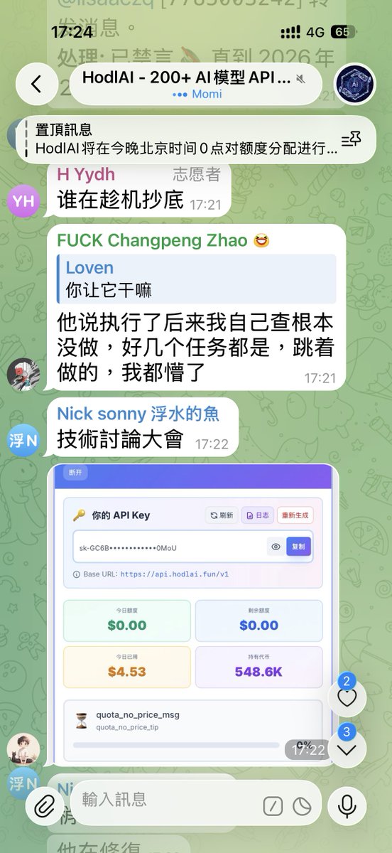 刚刚把每天 $HodlAI 的2000多U的API key额度都免费送给人家用了,每天都有2000多U哦,就是这么的朴实无华😎 我也不想挂去咸鱼,不如帮帮别人❤️❤️ @hodlai_bsc @hodlai_bot #HodlAI