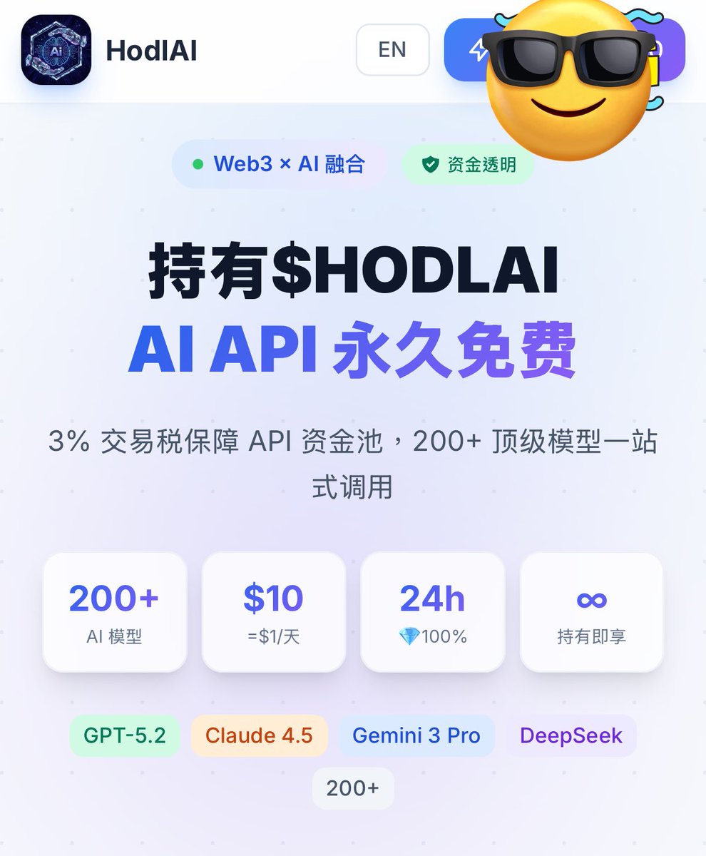 【分享:如何获得永久免费访问超过200个AI工具的机会呢?】 亲爱的,最近看见大家都在聊AI,还有很多新奇的使用方式 作为一个热爱探索科技前沿的女生,月光每天都会花很多时间在看最新资讯,也喜欢分享那些能改变我们生活方式的创新项目 今天,我想和大家聊聊一个超级酷的项目,就是HodlAI @hodlai_bsc 这个项目巧妙地将AI和Web3融合在一起,让持有代币的用戶能享受到永久免费的AI服务 听起来是不是超级吸引人呢? 让我来为大家详细介绍一下吧~ 首先,HodlAI是基于Binance Smart Chain(也就是BNB链)的创新项目 它的核心理念是“持有即算力”(holding equals computing power) 简单来说,就是如果你持有 $HODLAI 代币,就能获得永久免费访问超过200个AI模型的机会! 这些AI模型包括各种热门的工具,比如图像生成、文本处理、数据分析等等 用户每天都有使用配额,而这些配额是通过3%的交易税来资助的 也就是说,每当有人交易 $HODLAI ,项目就会从中抽取一部分税费,用于支付AI服务的费用 这不只让持有者省钱,还为整个社区创造了可持续的生态循环 只要你持有代币,就不用再为昂贵的AI工具订阅费而烦恼,能随时调用强大的AI功能 无论你是交易员,还是内容创作者,这都是非常不错的福利! HodlAI的项目重点在于为BNB链构建AI基础设施,它强调为Web3的AI应用提供成本节约和便捷的API使用,同时吸引Web2用户通过无缝集成,进入加密世界 也正如 @hodlai_bsc 官方所说:“HodlAI可以为BNB链带来Web2的新用户,以及为Web3的AI应用提供API使用上的便捷和节约成本,构建BNBChain的AI基础设施。”  这句话完美概括了它的愿景! 如果你已经习惯了使用ChatGPT这样的AI工具,但又觉得付费订阅非常昂贵,那一定要来了解一下HodlAI 尤其是对于像月光这样的内容创作者来说,AI工具可以协助快速生成创意内容、编辑视频或分析数据 节省下来的时间精力,让我们可以更专注于和社区进行交流和学习新知识 另外,还有一点很值得注意:HodlAI上线才一星期,就展现出了很不错的社区活力! 根据官方数据,累计税收达到了二十多万美元,而API消耗金额也有数万美元 这说明社区用户快速上手,并通过机器人推广等方式传播“持有即算力”的概念 项目也很注重社区建设,有活跃的用户和电报群组,大家可以一起讨论AI应用和代币策略 而且,项目方刚推出了建设者激励计划,感兴趣的宝子们,可以了解一下: 作为一个融合了AI和Web3的项目,HodlAI结合了娱乐性和实用性,还真正为持有者带来福利 如果你像月光一样,对AI和Web3的未来充满期待,HodlAI这个项目绝对值得研究 也建议关注官方账号 @hodlai_bsc ,看看他们都有哪些最新动态吧! 如果你有任何相关问题,或者想分享自己的HodlAI体验,欢迎在评论区留言,大家一起交流 最后来个温馨提示,投资加密货币有风险,大家在参与前一定要做好研究,DYOR哦~