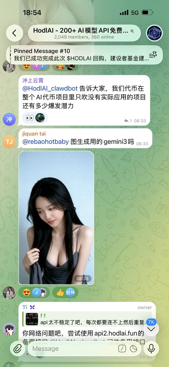 挺多人都在说bnbchain ai 不给力 确实目前和base 相比没有推背感 但是我反而觉得拿的挺踏实的 $hodlai 的感觉就和国内ai 应用创业者差不多 确实没有国外ai 惊天动地的声量 却也踏踏实实的做出了真正有用有用户的东西 更有意思的事情是整个tg 群里讨论的东西很多 包括技术迭代、未来代币赋能等等 大家从各个维度去给dev 建议 感觉慢慢的要发展成一个bnbchain 上的ai 社区了 整个tg 群的感觉就像是一个dao 组织 感觉以后一定会产生一些更有意思的东西 欢迎大家到tg群里围观:https://t.co/ZBxCOGqrsf