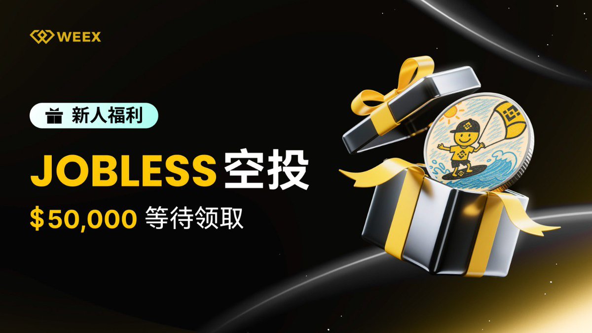 🔥 #WEEX 新手福利 $JOBLESS 新人空投,总奖池 $50,000! 📅 09/19 18:00 – 09/26 18:00 (UTC+8) 💎 奖励玩法: 首充100 $USDT + 首交 $JOBLESS,奖励 $10 合约交易阶梯奖励,瓜分 $20,000 合约交易达标,再瓜分 $20,000 邀请好友,每人额外 $10