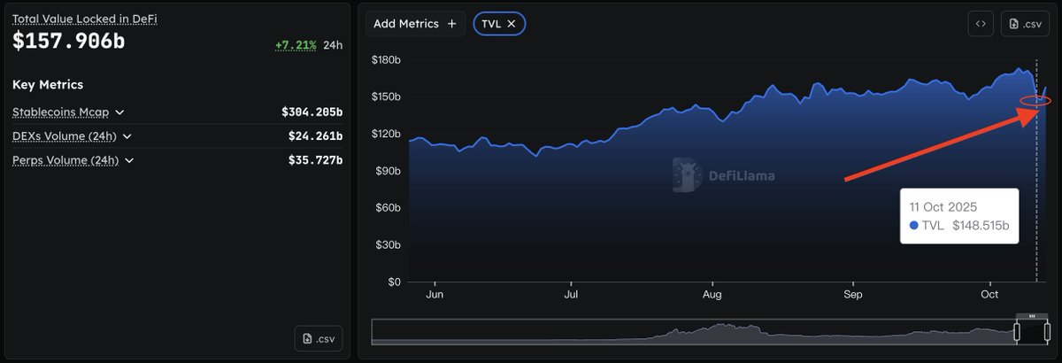 1011黑天鹅单日全网TVL 暴跌10%,但仅仅过了不到2天时间,全网TVL 指标实现V 返,收复近7成失地。