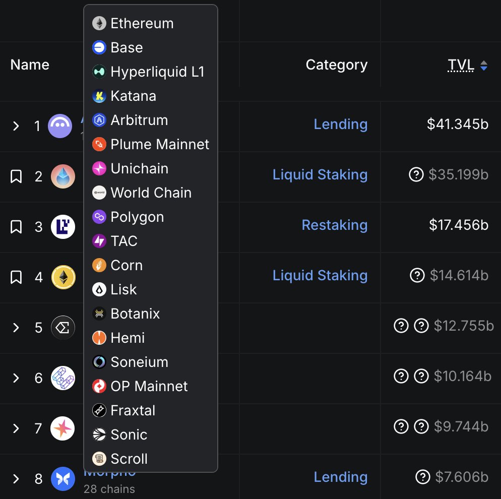到目前Morpho的TVL已超越 $Aave ,成为最大的借贷协议。