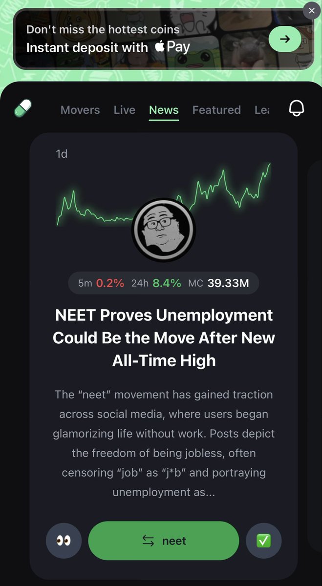先收菜撸一下 $dizzy, 随着大盘雄起很多meme都疯狂增长 $neet 也涨了3倍!任何时间都给机会!