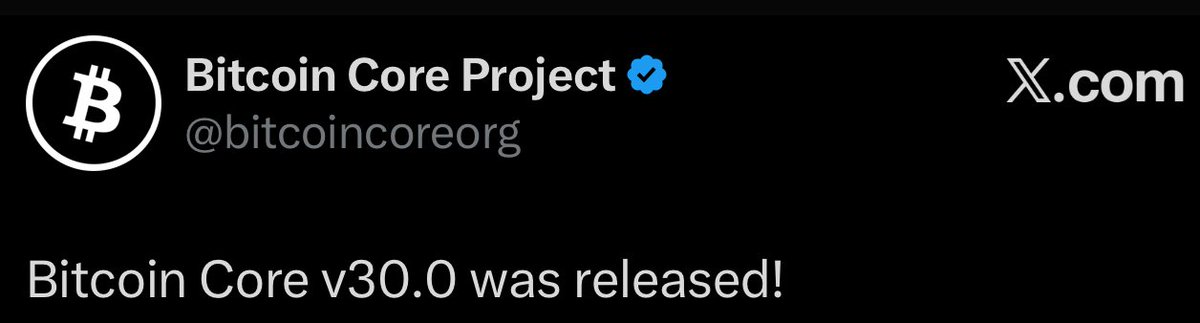 @bitcoincoreorg 团队正式发布 30.0 版本,带来性能优化、新特性和安全更新。本次更新放宽 OP_RETURN 限制,允许多数据输出;默认最小转发费率降至 0.1 sat/vB;新增统一命令行工具 “bitcoin”;重新启用 Windows 外部签名支持;钱包全面弃用 BDB 旧格式并支持 TRUC 交易;GUI 升级至 Qt 6 并支持深色模式。27.x 及更早版本停止维护。