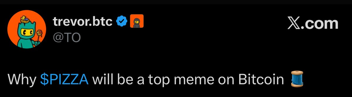 @TO 发文称 $PIZZA 不仅仅是忍者策略代币,更代表比特币最早的 Meme,致敬 2010 年用 1 万 BTC 买披萨的 Laszlo。据悉, $PIZZA 代币将于今日空投。(记得是 9 点空投来着,但是还没看到)