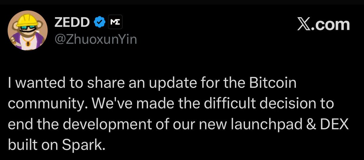 Spark 网络第三方钱包 @satonspark 宣布停用其 Chrome 插件,原因是开发重心调整,并提醒用户尽快备份助记词并卸载扩展。并表示网页钱包以及市场会正常运营中。(这玩意插件钱包没啥用户在用,就给关了吧)
