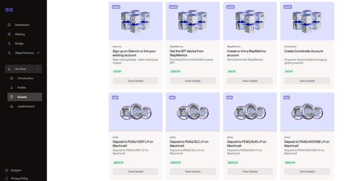👉完成任务——完成数百个任务,每个任务都会将您连接到 peaq 上的真实世界应用程序,以收集 XP。