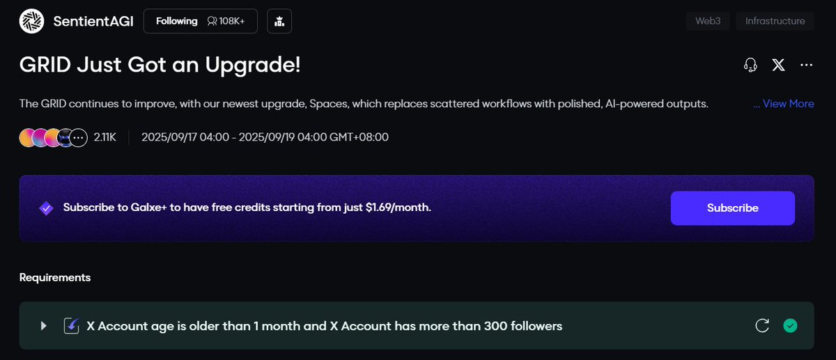1⃣融资8500万美元的@SentientAGI第五周银河任务出来了,这次有50积分!目前才2000人完成,时间只有两天,抓紧完成(X粉丝数要求300人,评论区互关):https://t.co/QyZDWzV3QD