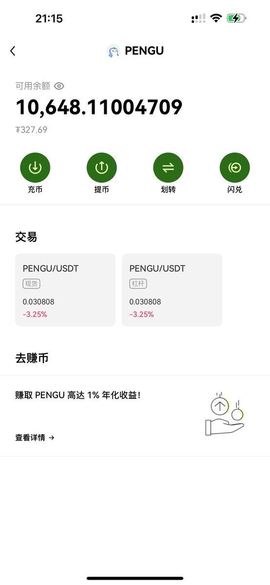 到今天 #OKX 上 PENGU 的赚币空投活动结束了,这次投 200 枚的 $OKB ,1枚 $BTC 以及 20,000 的USDT ,总的收益是 10,648.11 枚 $PENGU ,按照目前的价格 328 美元。