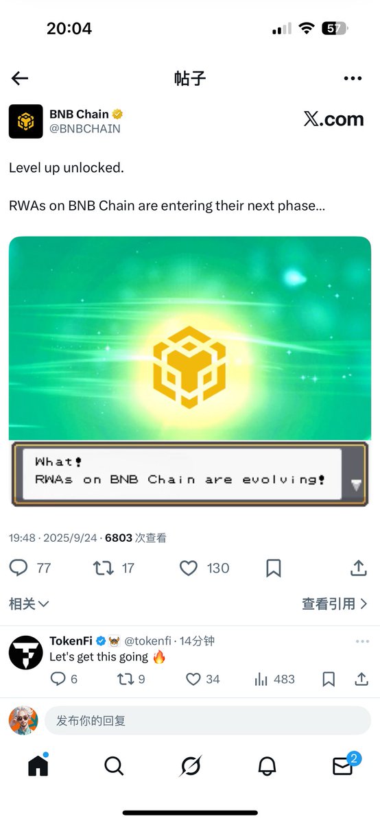 今天有意思的事来了——BNB Chain 正式开始喊 RWAs 了。