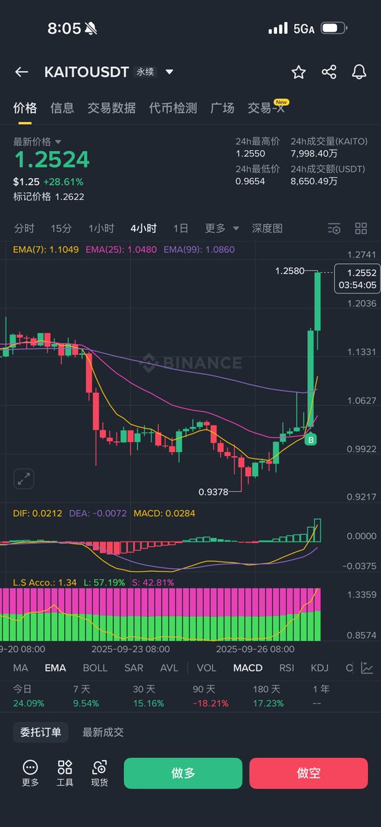 Kaito项目还是很会拉盘的,不知道为什么有人在这个位置做空,危险