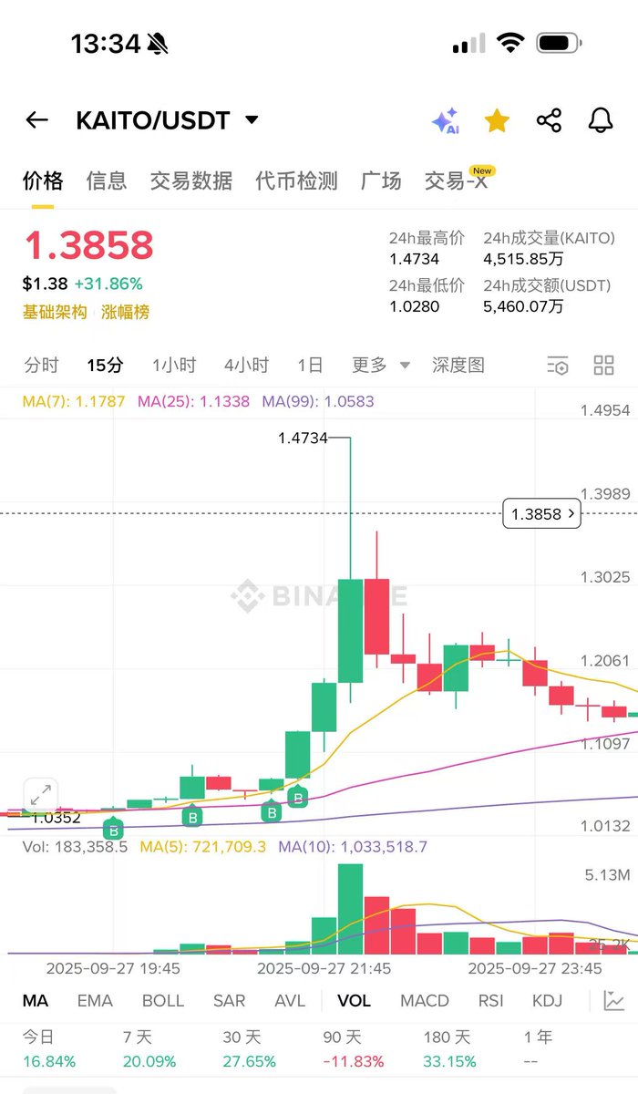昨晚得知大师兄 $mira 收益如此炸裂的瞬间我就赶紧冲去币安买 $Kaito 了,现在想想还是胆子小了,应该现货买的同时直接开一个10X Kaito做多合约的,平常不怎么玩合约,敏感度太低…… 就像@0xcryptowizard 所说,人的大脑跟AI一样,思维逻辑是LLM底层,平常的经验,阅读与操作方式就是数据训练,合约训练太少第一时间就没这反应🧐 现货买的 $kaito 都扔去质押了,质押除了能拿到空投之外,你参加Launchpad时候的额度也是有优惠的。就像昨晚 @Surf_Copilot 分析的一样,年底之前或者说明年2月解锁前,Kaito都Mega Bullish!