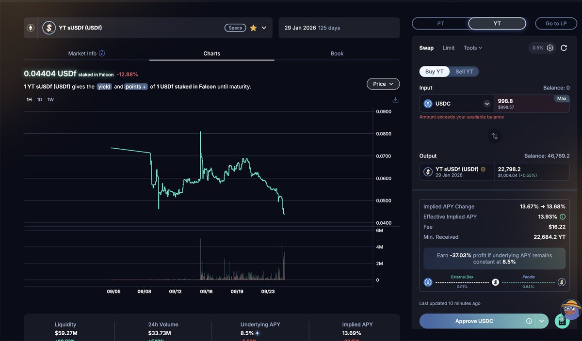 Falcon Finance Stablecoini Susdf’i发表在@pendle_fi上。