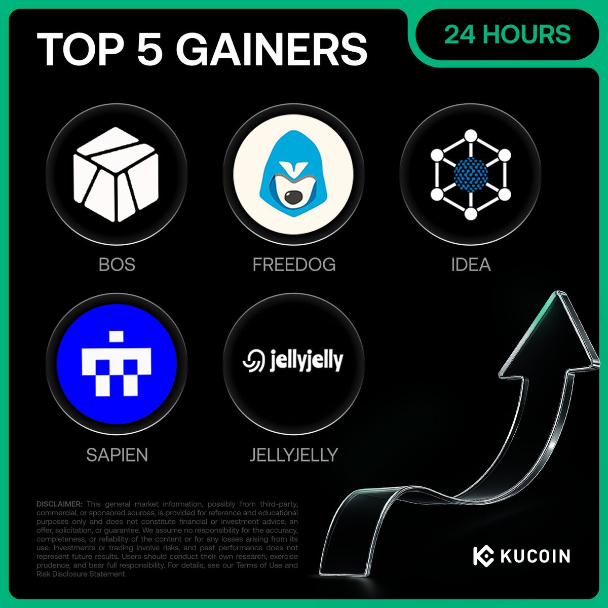 🚀 #KuCoin 24 小时涨幅前 5 名(2025 年 10 月 30 日) 1. $BOS (@BTC_OS) - $0.009 (+91%) 2.#FREEDOG (@theFreeDogs_bot) - $0.00009 (+65%) 3. $IDEA (@ideaologyio) - $0.000037 (+54%) 4. $SAPIEN (@JoinSapien) - $0.18 (+40%) 5.#JELLYJELLY - 0.11 美元 (+38%) 查看当今顶级加密货币