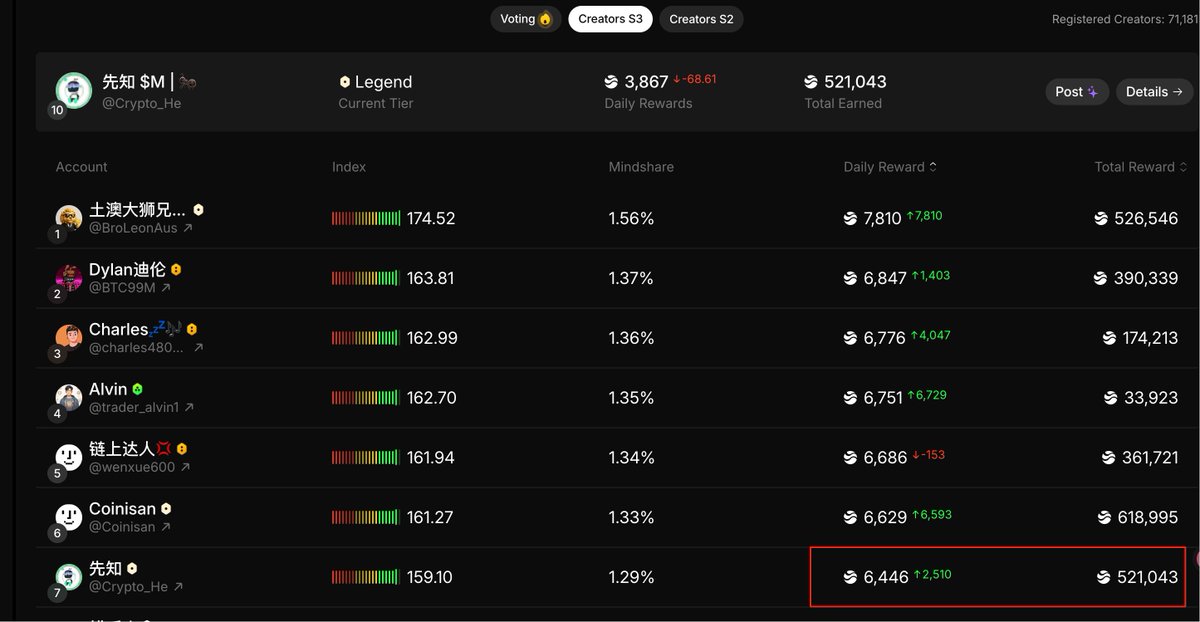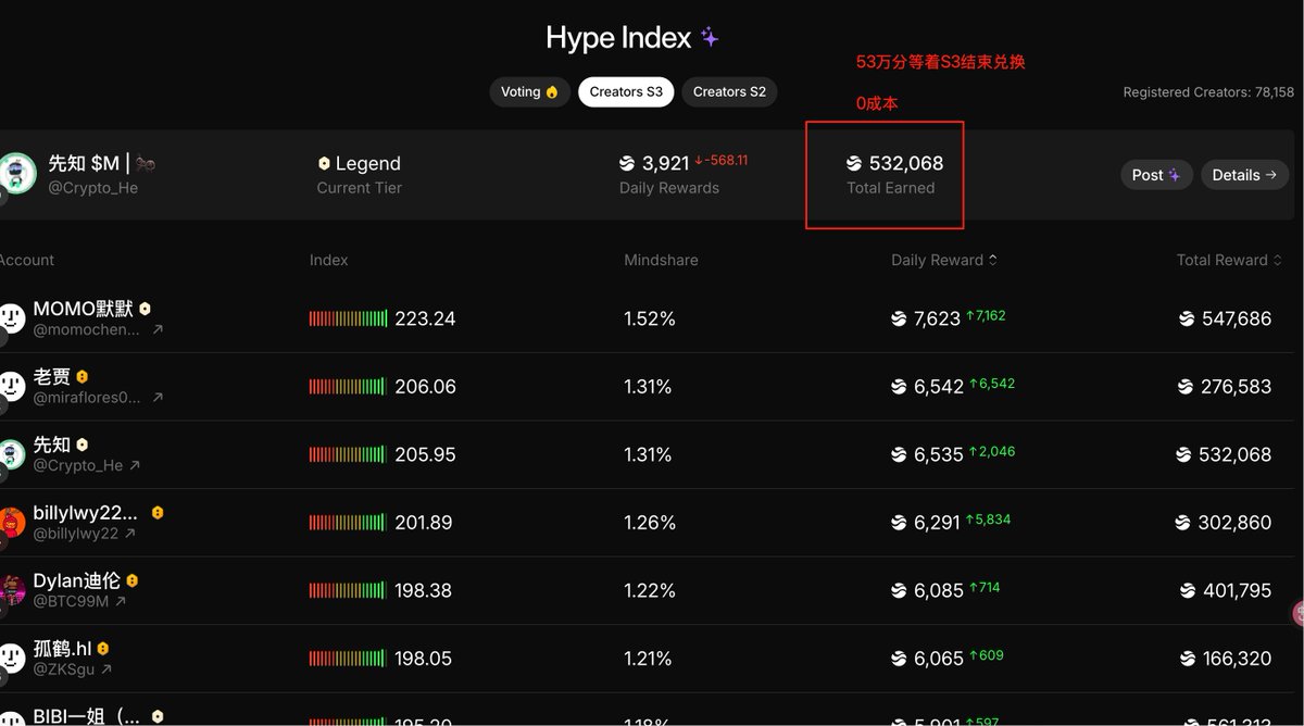 你们可以看到先知现在S3累计加了52万分,目前价值1万多美金是有了,大概在60多天后结束发布积分兑换奖励