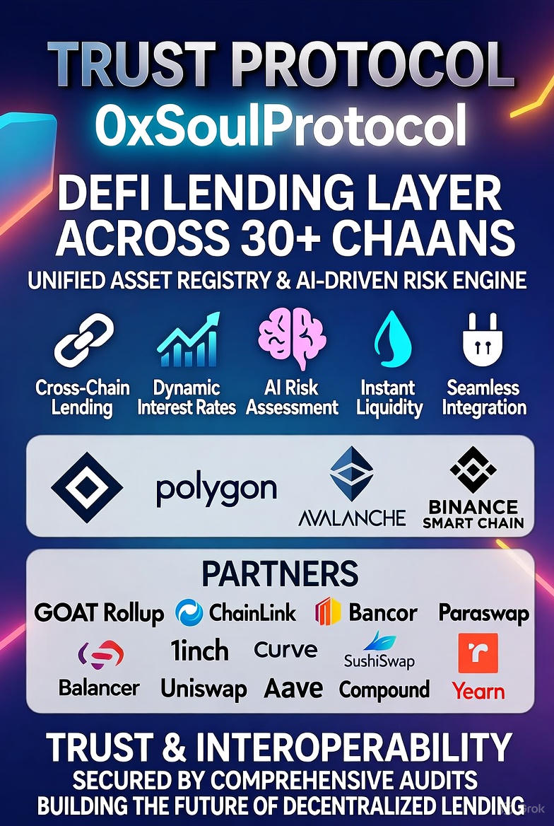 我发现0xSoulProtocol @0xSoulProtocol 它不是协议,是全链交响的灵魂胶水,横跨30+链的借贷层,统一资产登记,AI风控+四重跨链验证,LayerZero、Wormhole保驾护航。