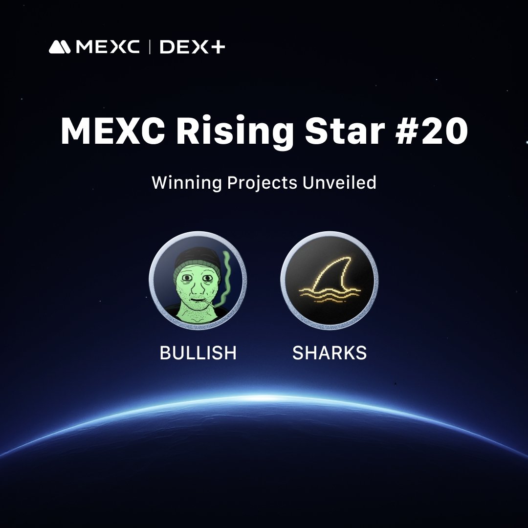 🌟 MEXC 新星 #20 获奖者公布!恭喜获奖者:$SHARKS - @sharksdotmoney 和 $BULLISH - @SolBullishDegen。