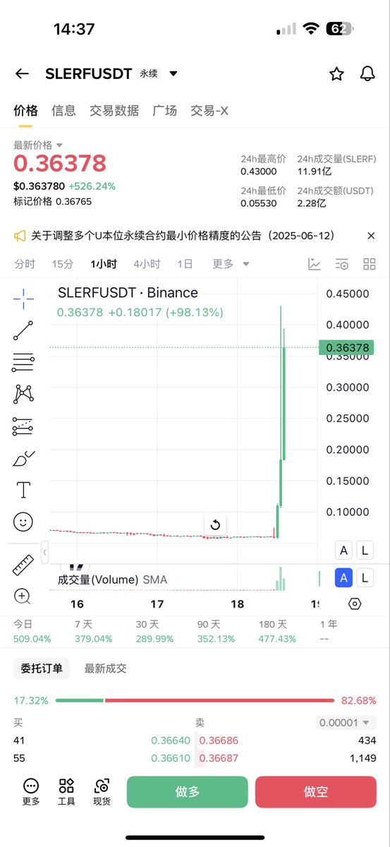 举例说 @binance 一个下架公告,就能拉飞昨天的 $SLERF 。