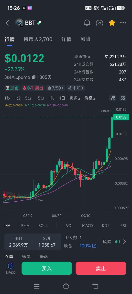 $sbtl 我是躺着打游戏的时候看见监控说很多聪明钱买入,打开手机一看一根大阴线,完全不知道是什么,就买了,想着吃个反弹顺便把alpha刷了,大概是0.023的价格,然后买完又去打游戏了,给忘记了,过了一会想起来自己买了就去看,就已经翻倍了,这个时候我就截了个图开始装逼,装逼的时候价格也才0.047,没啥好装的,我就开始出本,结果随着价格一路涨,装得比我厉害的人多了去了。alpha空投的价值最高到了1000u以上,不知道为什么涨,但是可以研究下其他alpha有没有机会了。