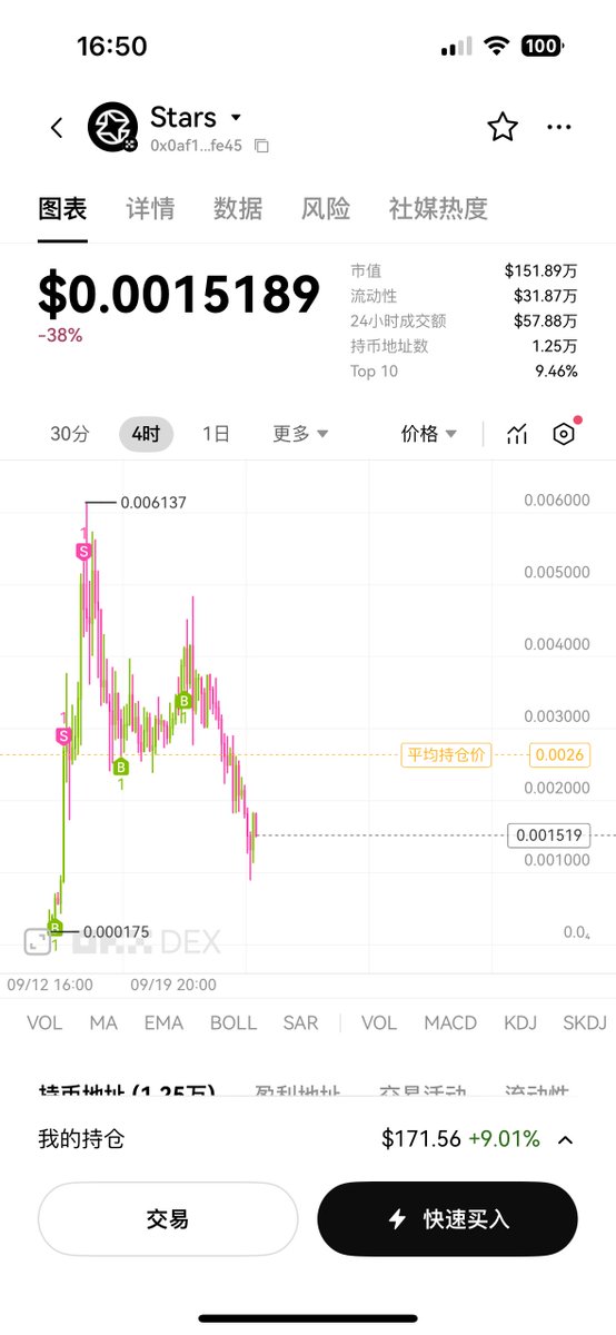 $stars 有些回调,很多人问我要不要走,我就先不走了,感觉这种模式如果真能起来还是有得玩的,毕竟现在xlayer上高于3m市值的都不多。