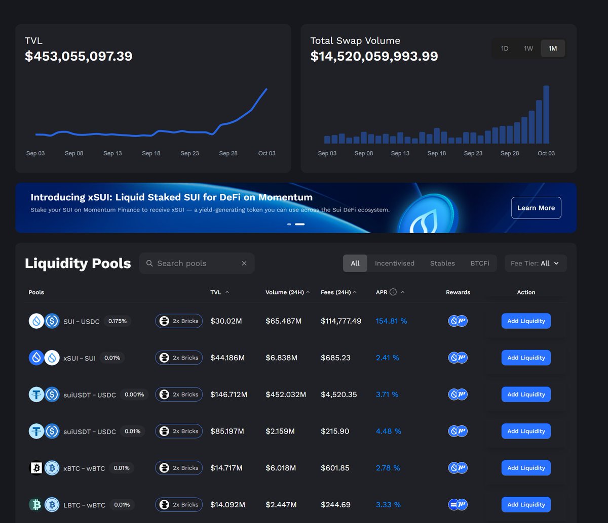 Momentum @MMTFinance 自上了 @buidlpad 之后,TVL直线上升,目前已经突破 $454M, 太卷了。