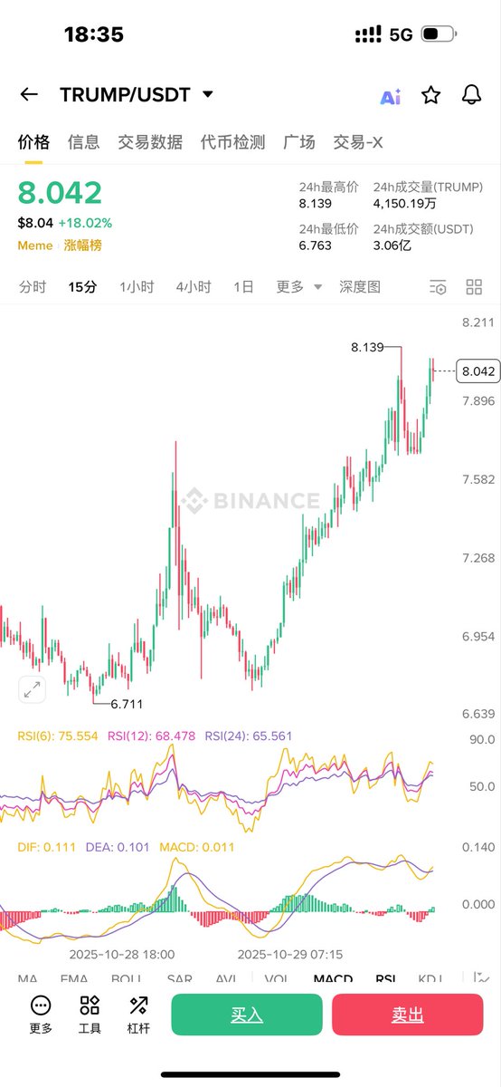 TRUMP 看来启动了! 这一波看起来是海内外共同的合力 从此前下跌中每日成交几百万美元,到前天和昨天的几亿美元,感觉到行情的异动。 这些内容我发在了禁言群,并也稍后发在了免费的每日投资频道中,目前恢复了日更,同时加上每日点评,大家速度关注频道,打开推送通知