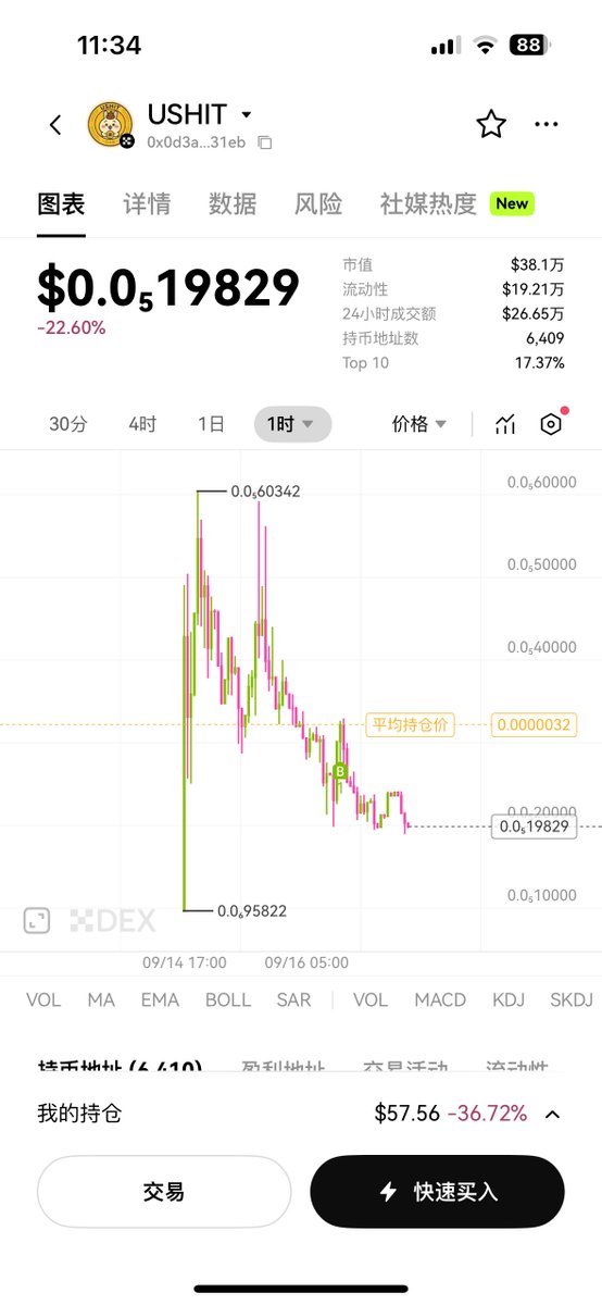 朋友按頭抄了點這個 $ushit ,昨天群裡已經擼了一波走了,剛朋友打電話跟我說這個項目方要走分紅➕地推玩法,看了下位置還行,趕緊抄了點回來玩玩。