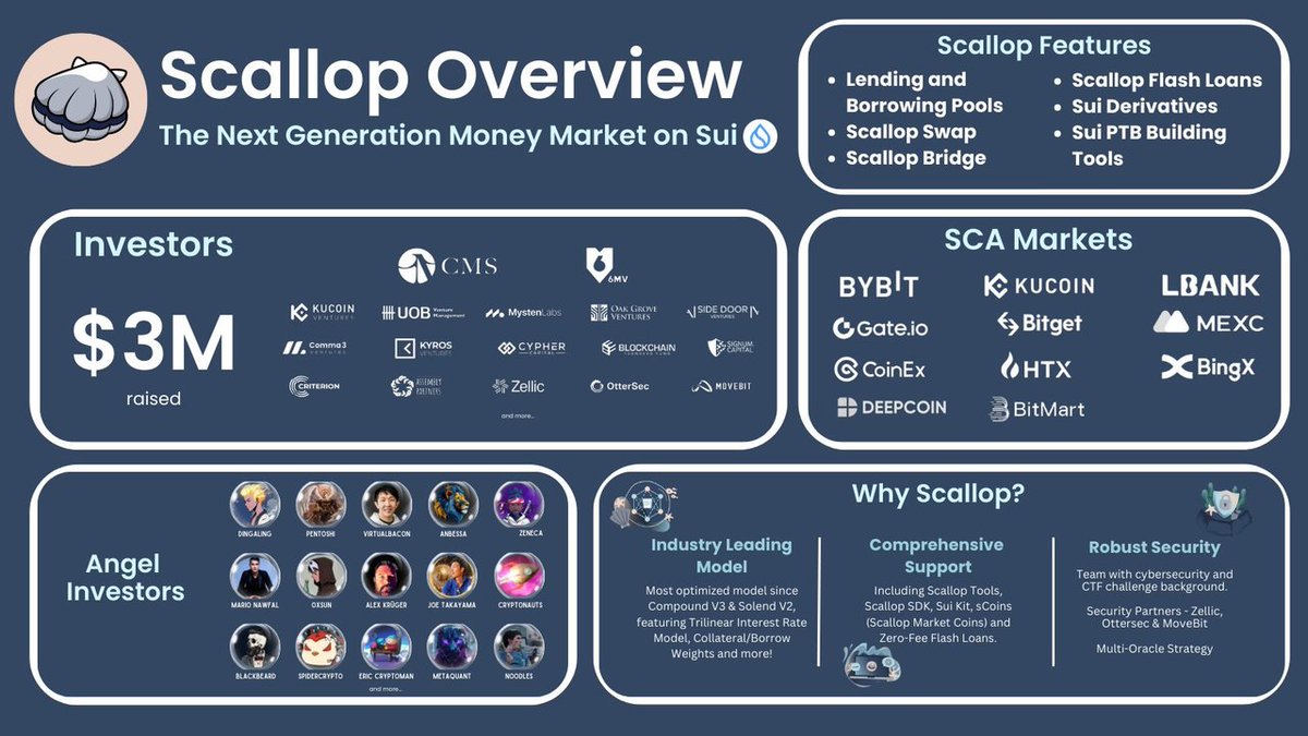 Scallop 是 Sui 上的借贷协议,在今年实现1.6亿美元的TVL,并在今年第一季度完成300万美元的战略轮融资,投资方包括 CMS Holdings、6th Man Ventures等知名机构和个人。