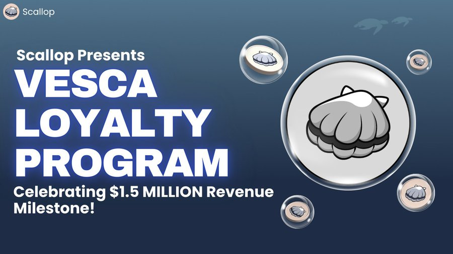 🐚贝壳@Scallop_io 平台总收入超过 150 万美金,特推出了忠诚奖励计划——奖励 10 万美金 $SCA 等值代币,这也是项目方第三次回购发放奖励了。