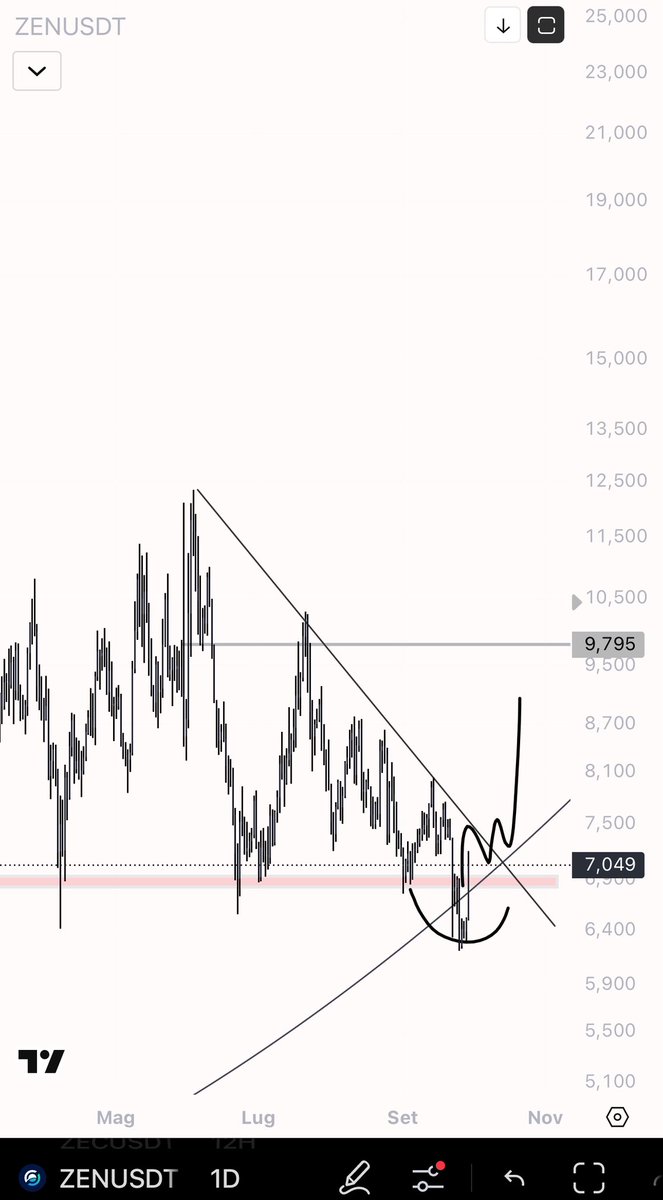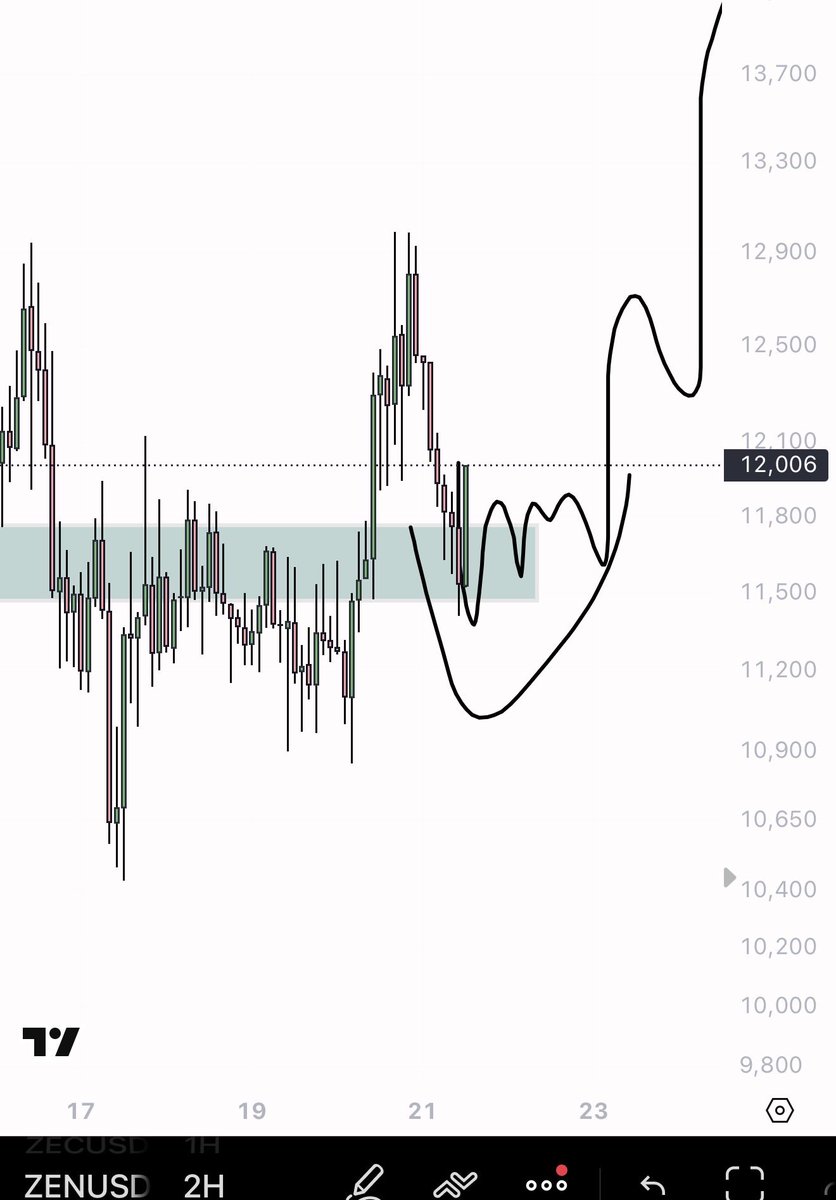 $ZEN 从高点 $46 下来,盘了很长一段时间,最近是突破后回踩了 20 日线和 20 周线,回落至 $8 出头,这个位置盈亏比不错,止盈止损都好弄。