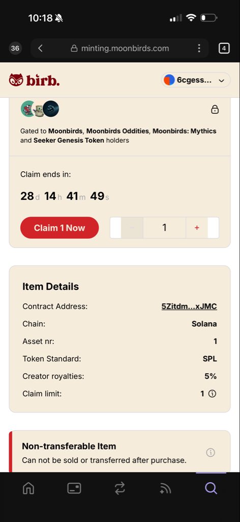 今天刷到 @toupaiwang 偷拍王的推文才發現——Moonbirds 聯名 NFT 徽章已經開放領取。