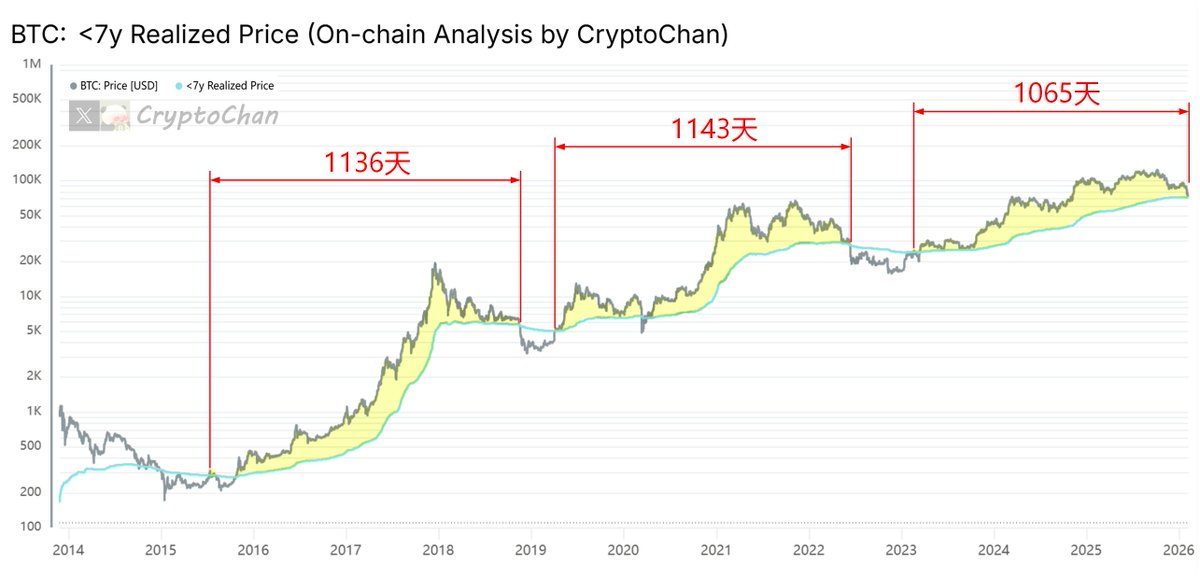 BTC: Realized Price 是一个链上指标,计算时排除那些持有时间超过7年的比特币(这些币往往被视为极长期持有、失落或不活跃的供应,不会轻易进入市场流通)