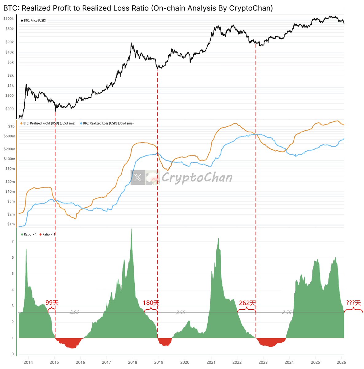 比率 <1:熊市或底部信号,短期买家成本低(低价入场),弱手出清,市场或将复苏