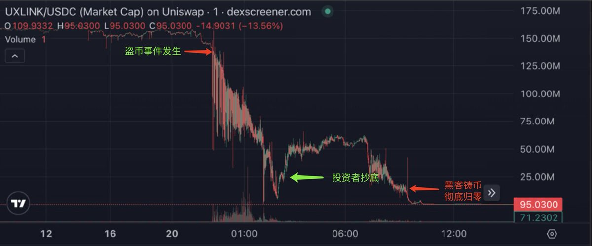黑客攻击 UXLINK 盗取了价值 1100 万美元的资产,引发了市场恐慌, $uxlink 币价迅速下跌了 90% 。