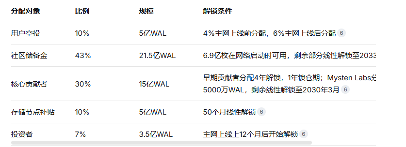 Walrus的代币经济模型经过精心设计,体现出强烈的社区驱动理念。