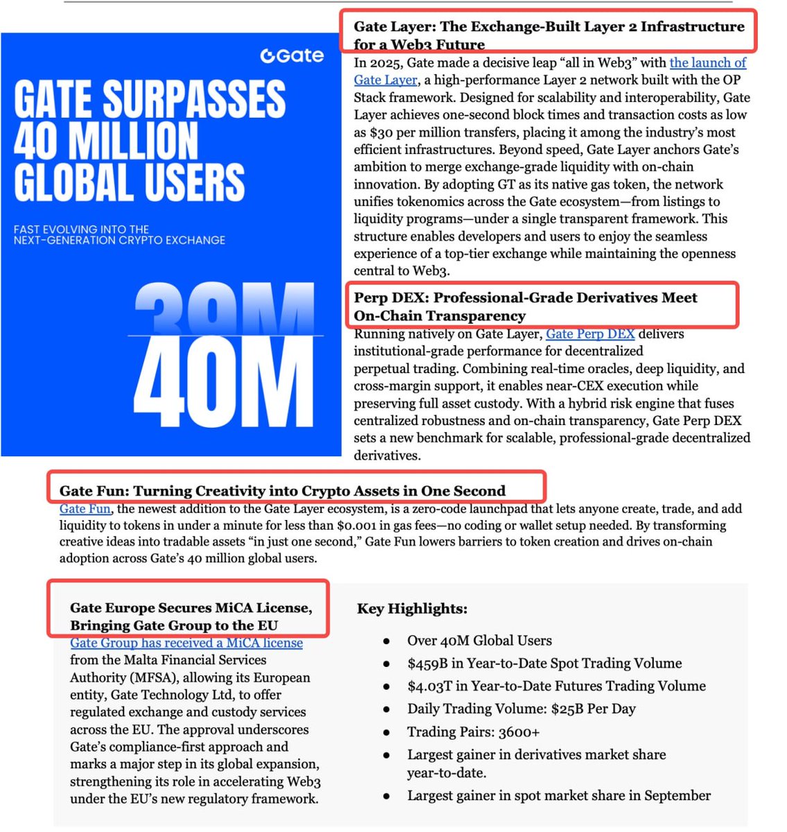 同时,Gate Europe 已获马耳他 MFSA 批准,通过 MiCA 牌照 拿下欧盟通行证,这让 Gate 能在合规框架下继续扩张欧洲市场。