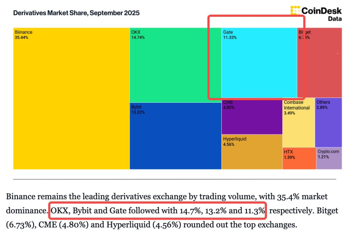 在全球 CEX 现货整体成交下滑(约 $1.67T)的情况下,但 Gate 逆势增长。Bybit 和 MEXC 也略有提升(6.03%、5.88%),说明市场在分化,中腰部在崛起。