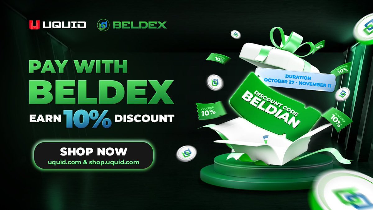 10 月 27 日到 11 月 11 日 @BeldexCoin 跟 @uquidcard 搞了个限时活动:只要用 $BDX 支付、结账时输入优惠码 BELDIAN(全大写),就能立减 10%,最多省 5 美元。线上买虚拟卡、点数、充值都行,线下 #UQUID 实体店也能用。