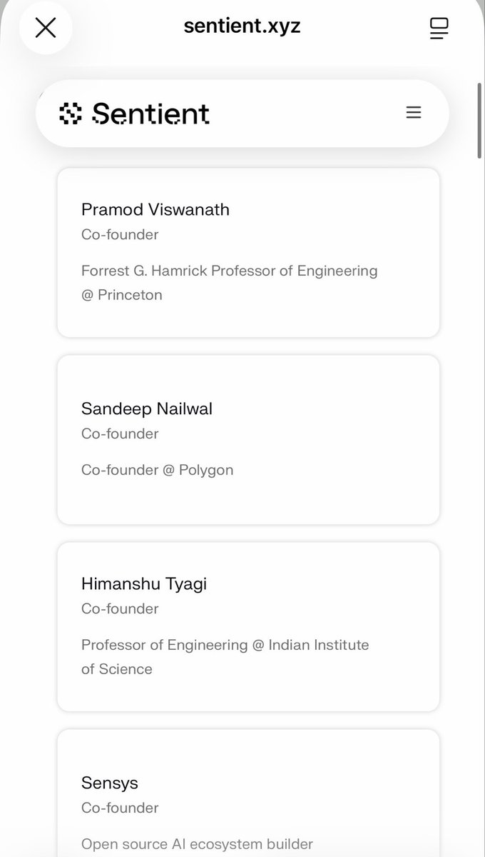调查了 Sentient 的团队背景,他们团队整体是 4 大 co-founder:
