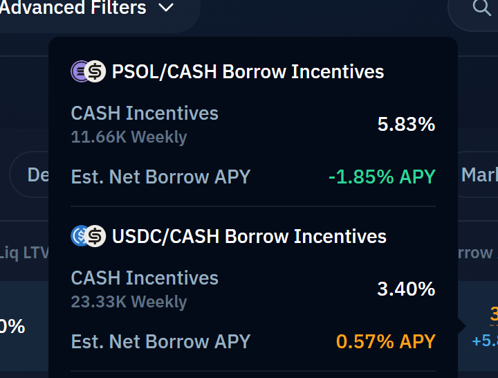这就导致,你在 Kamino 上抵押 PSOL 借 CASH,本来要付 4% 的利息,但是却补贴 5.8%,导致你借 CASH 电表倒转,还能薅到净 1.8% 的 APR。