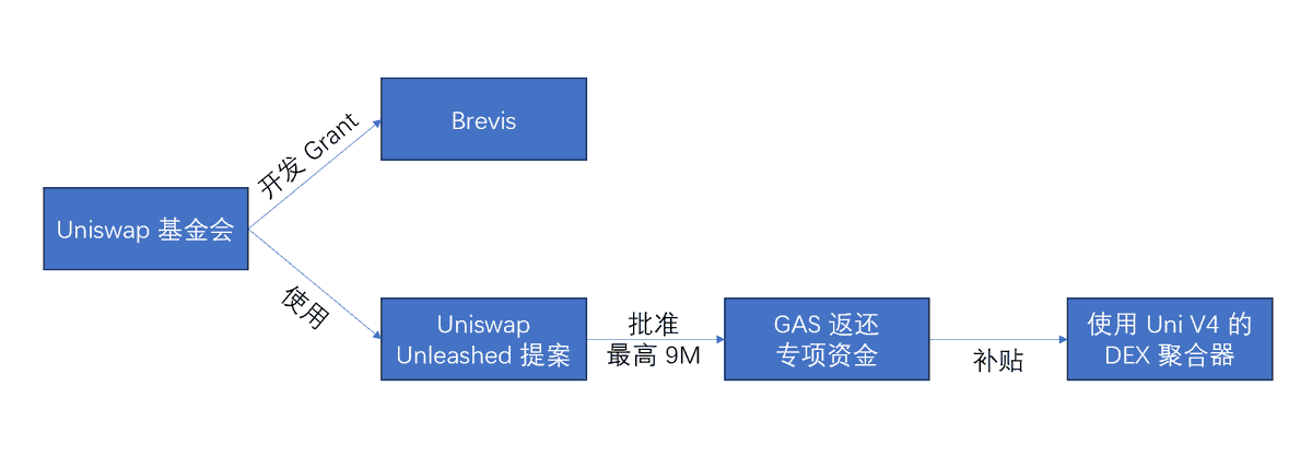 确切来说,应该是 Uniswap 给了Brevis 一笔开发 grant,用于开发 gas 返还的 ZK 证明。