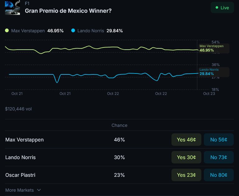 墨西哥 F1 大奖赛首个测试市场的交易额已超过 12 万美元,
