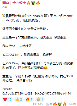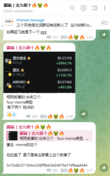 群友80k发出来,当时没有看准啥叙事,后来研究三个合约之后重点在频道推荐 重生meme