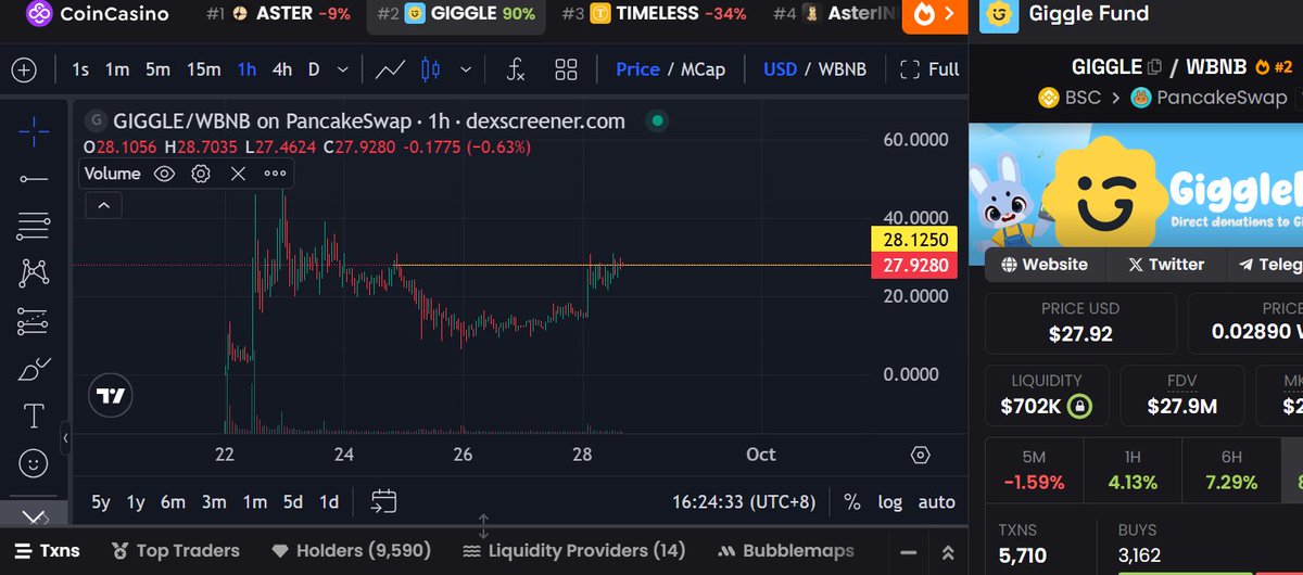 本月的主题大概是ETF/DAT概念,可以关注的币种有 $SOL $LTC $DOGE $AVAX 等,我押注的是SOL在Q4跑赢ETH。另外,CZ回归后的币安,显然有所不同,BNB在今天创下了新高,BSC链上的meme $4 $Giggle 也带来了一定的赚钱效应,我买了一些 $Giggle , 目前市值约50M,慈善是CZ最爱的话题,赌一波热度持续。(抹茶同步上线了$Giggle ,有现货和合约可供交易)