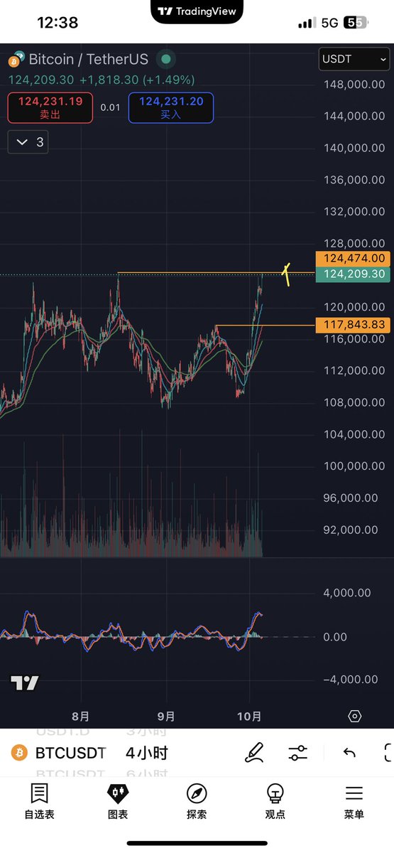 支撑位:117800,压力位:124700