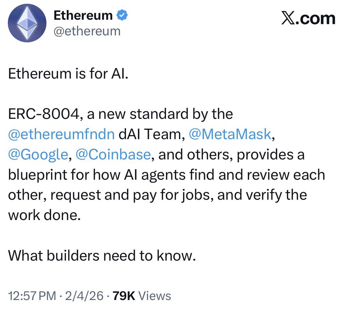 ETH 刚刚宣布了一项重大的人工智能游戏规则改变者 ERC-8004 对 ETH 超级看涨 10,000 美元的 ETH 现在感觉很便宜